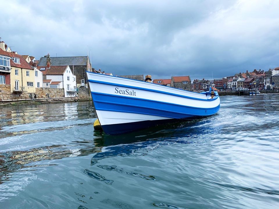 ButtonSeaSalt is sea worthy!! Seasalt is a traditional local fishing cobble built in 1963 refurbished to its original glory. You will see SeaSalt regularly leaving Whitby Harbour to harvest the sea salt which in turn will help us to preserve this valuable, traditional wooden fishing boat for generations to come.